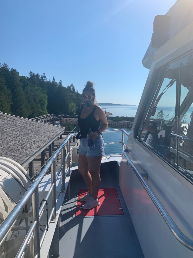 I have never seen anywhere in Ontario more beautiful: it took my breath away, literally! Our time was short on island as there were new time restrictions due to COVID. We scheduled our departure for 9 am and had to depart back to Tobermory by 12:50 pm. The journey was about 15 mins and sunbathed on the upper deck with the cool island breeze cascading over us.